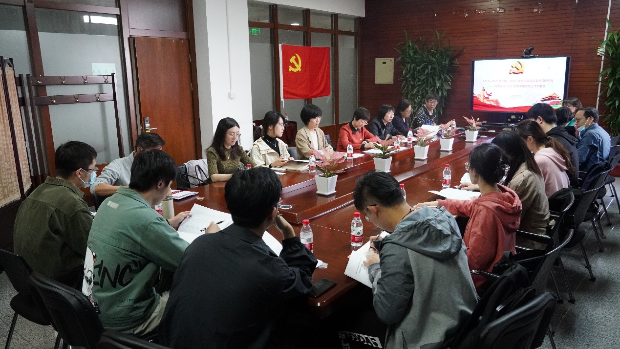 首先,党委委员刘玉领学了习近平总书记在中央党校(国家行政学院)中青年干部培训班开班式上的讲话精神,与各位党支部书记和理论导师共同学习了《中国共产党普通高等学校基层组织工作条例》。按照学校党委要求,部署了本学期党支部工作要点和工作要求。她从学深悟透习近平新时代中国特色社会主义思想、坚决做好中央巡视和学校巡察中关于加强基层党建整改工作、深入开展党史学习教育、做好教师和学生思想政治工作、做好宣传工作、做好纪检和统战工作等几个方面做了详细说明。党务秘书刘畅补充说明了党支部工作开展的注意事项,并就《党支部工作手册》的填写规范进行了培训。