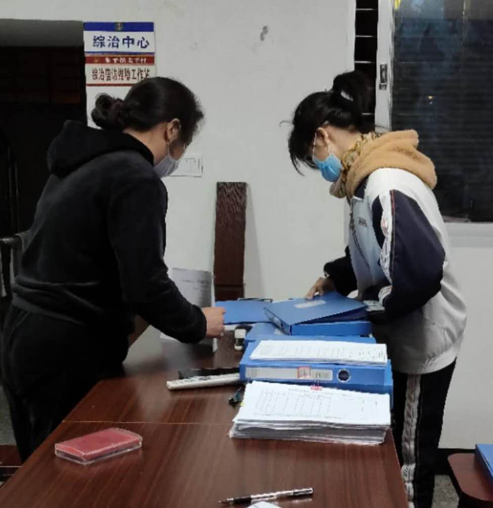 我是中途才加入村里的防疫志愿工作中的。我第一次踏进这个房间时便感叹于柜子里满满当当的文件档案和屋内忙不停歇却有条不紊工作氛围。几天的了解下来,我切身地感受到防疫下所谓中国力量与制度优势,而这都离不开基层人员勤勤恳恳的工作、兢兢业业的态度,是他们支撑起了整个抗疫背后的工作。