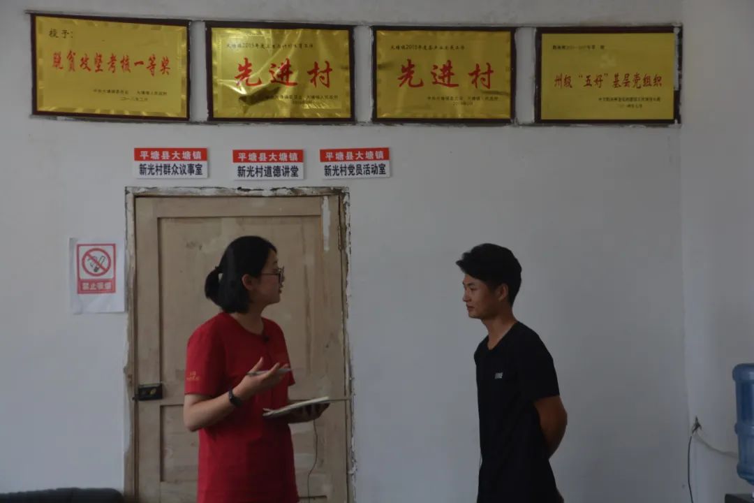 ▲英雄联盟下注 硕士生祝栗绚齐访谈平塘县大数据与电子商务服务中心副主任(担任大塘镇新光村驻村第一书记)李宜臻