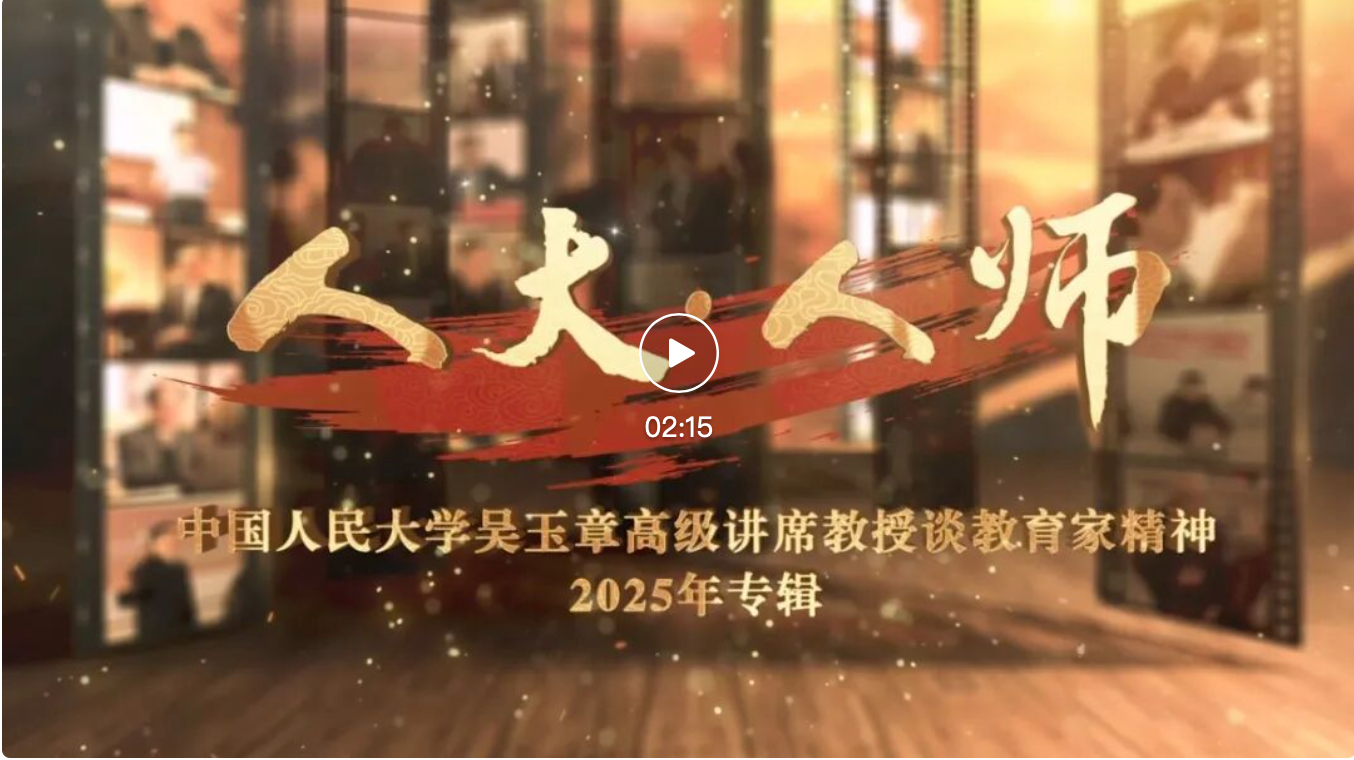 为大力弘扬教育家精神,加强新时代高素质专业化教师队伍建设,推动师德师风先进事迹深入人心,中国人民大学党委教师工作部(人才办)策划并推出“人大·人师”第六季微视频。让我们一起感受这份绵长而深厚的力量,见证师者风范,汲取前行力量。