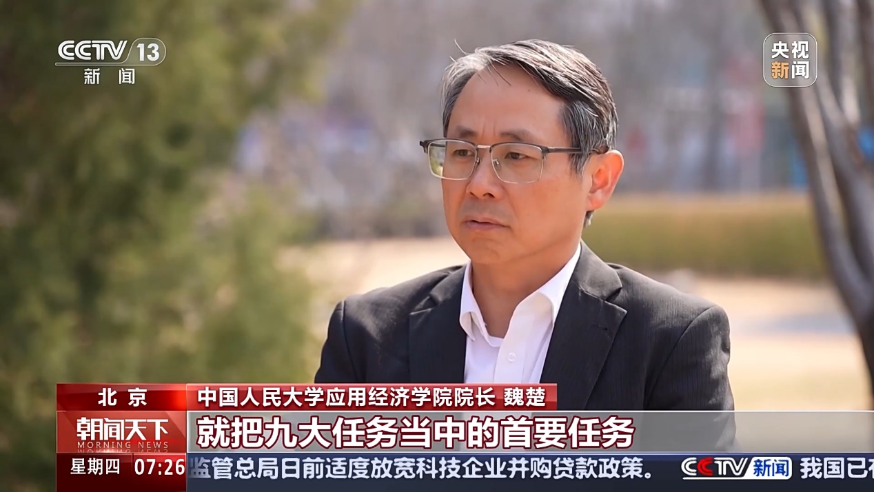 全国两会期间,英雄联盟下注-英雄联盟博彩 院长魏楚教授接受中央广播电视总台《朝闻天下》栏目采访,解读《政府工作报告》。