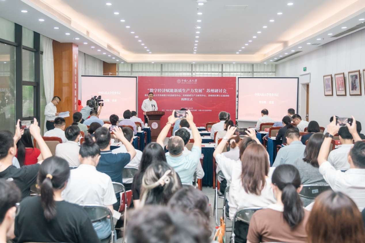 为积极响应即将召开的二十届三中全会,因地制宜加快发展新质生产力,6月21日,“数字经济赋能新质生产力发展”苏州研讨会暨中国人民大学苏州数字经济研究中心、苏州新质生产力研究中心、苏州校区博士后流动站揭牌仪式在中国人民大学苏州校区举办。2024/06/25