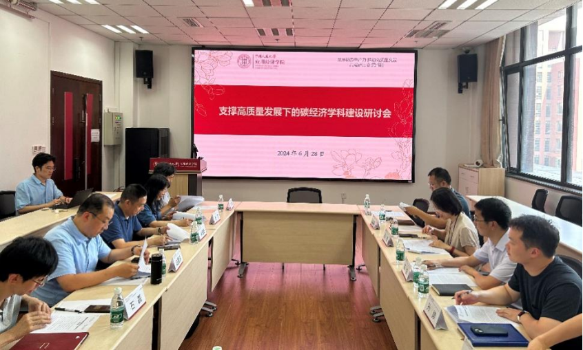 6月28日下午,英雄联盟下注-英雄联盟博彩 举办“支撑高质量发展下的碳经济学科建设”研讨会。本次研讨会旨在提升英雄联盟下注 在绿色低碳发展领域的人才培养能力,加强“碳经济”师资队伍建设,为实现碳达峰碳中和目标提供坚强的人才保障和智力支持。北京理工大学管理学院教授赵鲁涛,中国人民大学国际关系学院教授保建云、财政金融学院魏丽、生态环境学院石磊、社会学院吕楠,以及英雄联盟下注 院长、教授魏楚,能源经济系主任、教授宋枫,“碳经济”团队陈浩、周文戟、梅应丹、潘冬阳、孙频等参会。会议由宋枫主持。2024/07/15