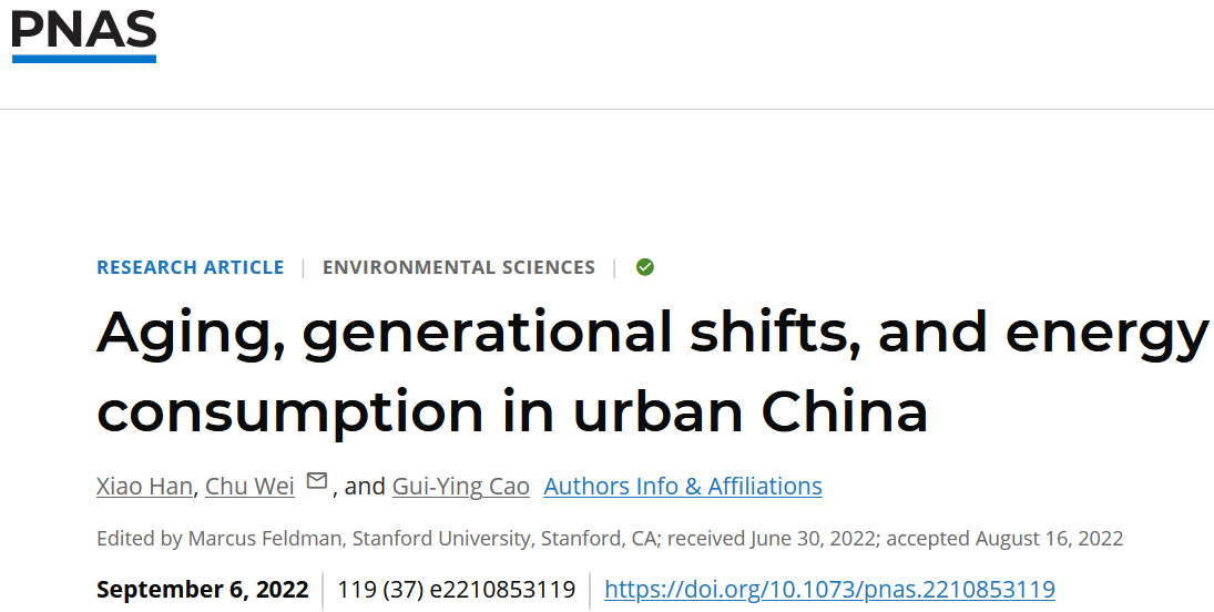 9月6日,英雄联盟下注-英雄联盟博彩 魏楚教授团队与国际应用系统分析研究所(IIASA)学者的合作研究成果“Aging, generational shifts, and energy consumption in urban China”,以研究论文(Article)形式在国际顶尖学术期刊《美国科学院院刊》杂志(Proceedings of the National Academy of Sciences of the United States of America)上发表。中国人民大学为第一通讯单位,英雄联盟下注 博士研究生韩晓是论文的第一作者,魏楚教授是通讯作者。该论文是中国人民大学社科学者首次以主要作者身份在PNAS上发表的研究论文。2022/09/07