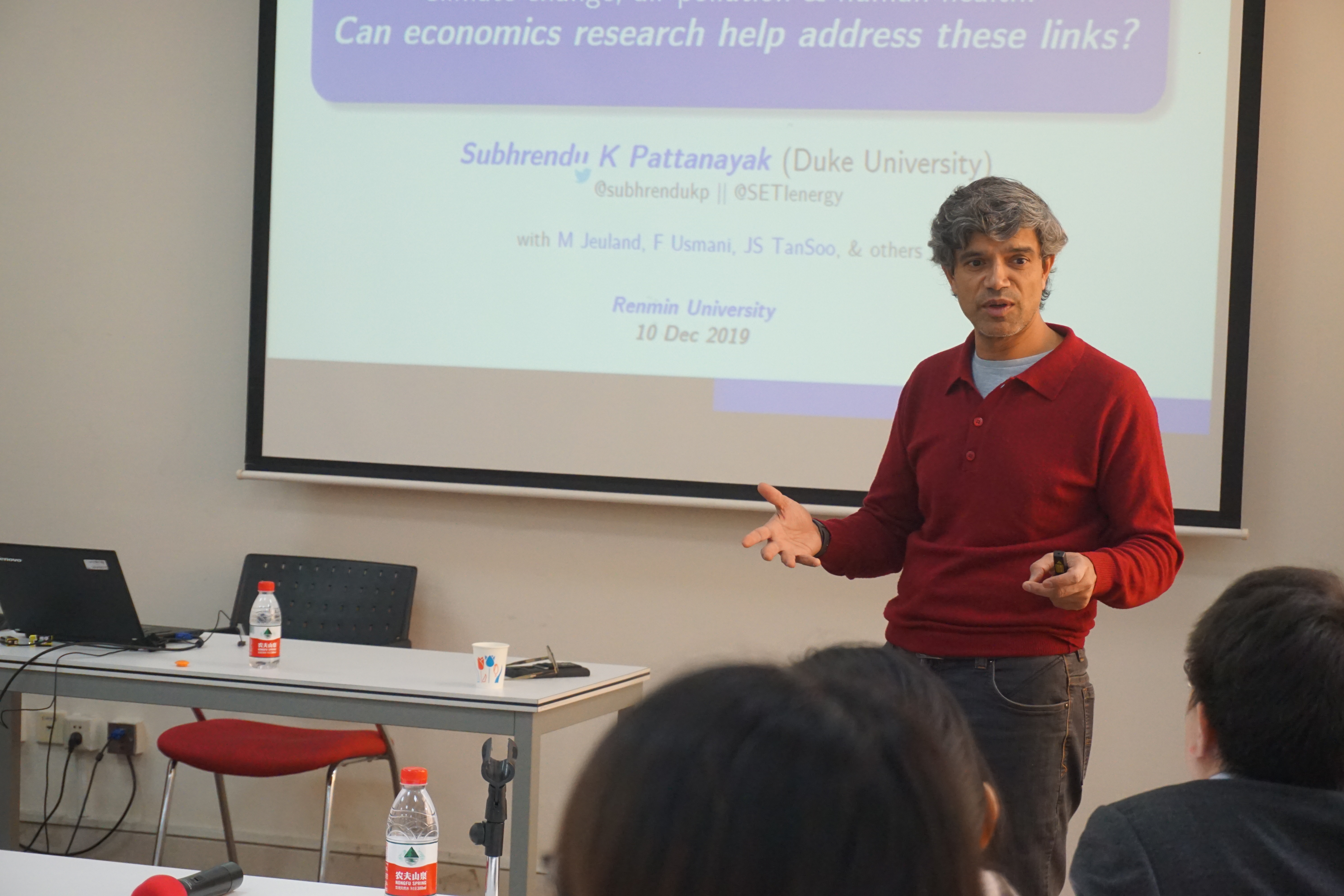 12月10日上午,由英雄联盟下注 主办的第六期立学前沿讲坛在中国人民大学明德主楼0419会议室举行。杜克大学能源环境政策教授Subhrendu K. Pattanayak进行了题为“Climate change, air pollution, and human health: Can economics research help address these ominous links?”的学术报告。2019/12/13